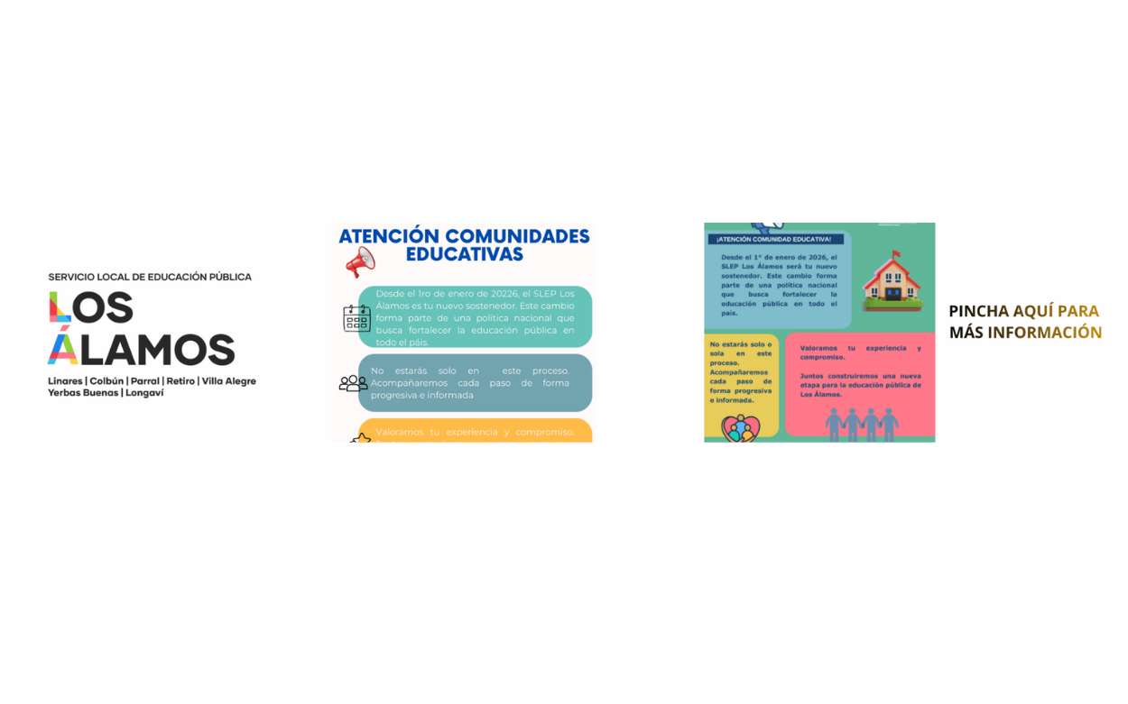 El Servicio Local de Educación Pública Los Álamos a cargo de la administración de los jardines, escuelas y liceos públicos de Colbún, Linares, Yerbas Buenas, Villa Alegre, Parral, Retiro y Longaví, en la Región del Maule.